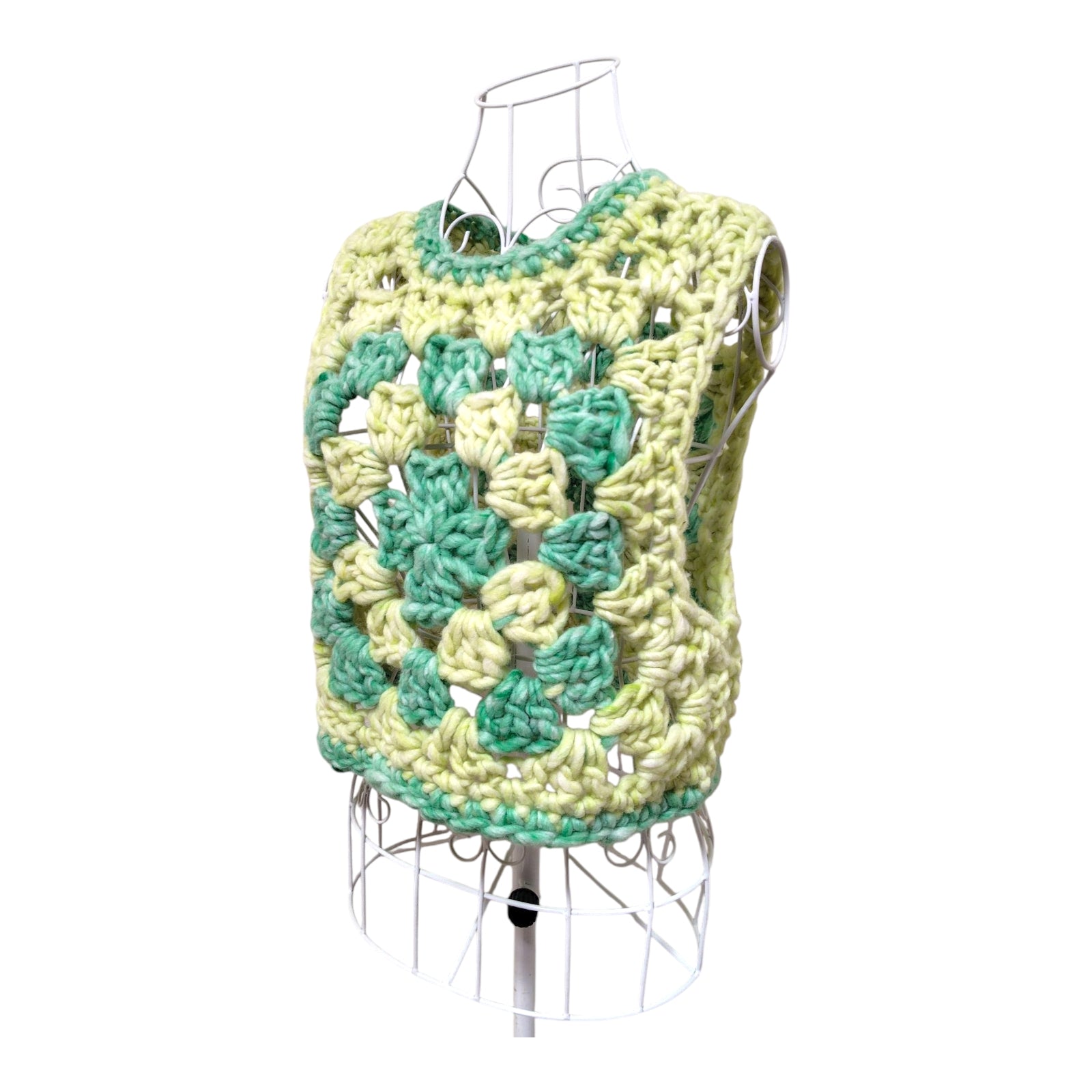 Handmade Crochet Granny Square Vest (100% Wool, Lime Green) Women's Sizes S-M