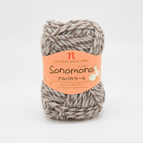 Hamanaka's "Sonomono Alpaca Wool" is a natural hand-knitted yarn that uses no dyes and makes use of the color and texture of the raw wool.