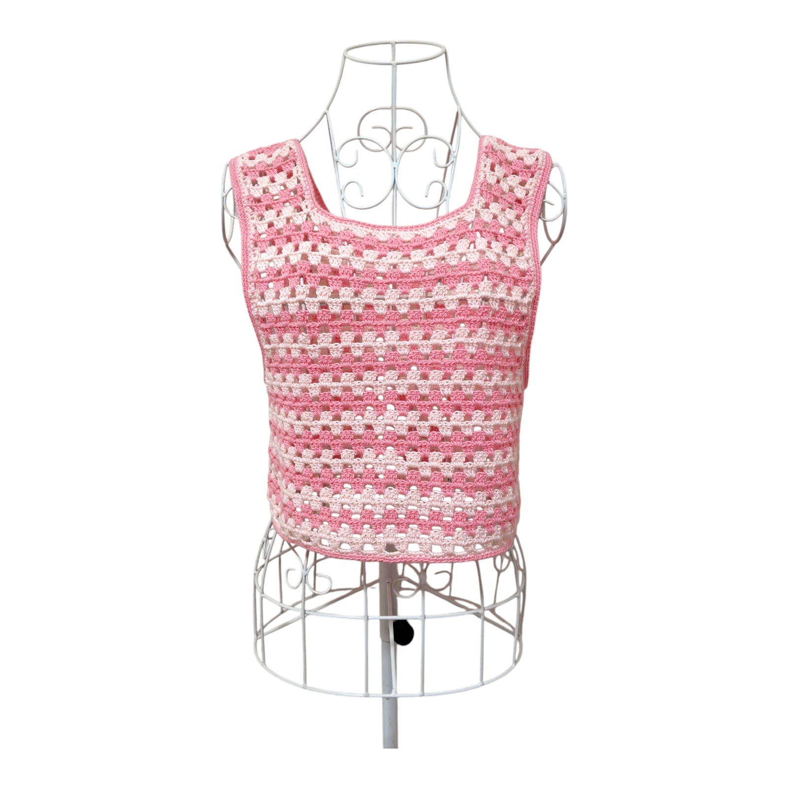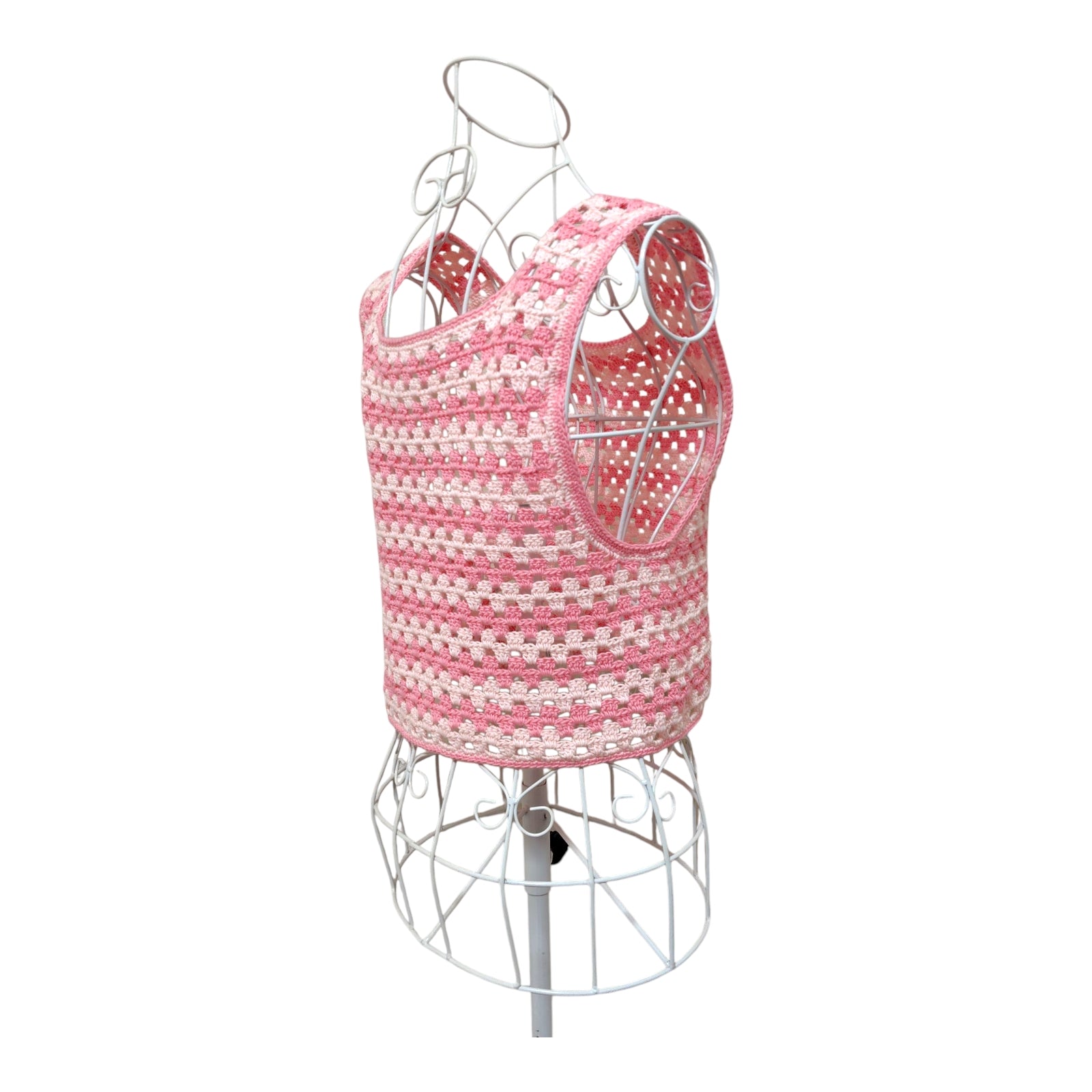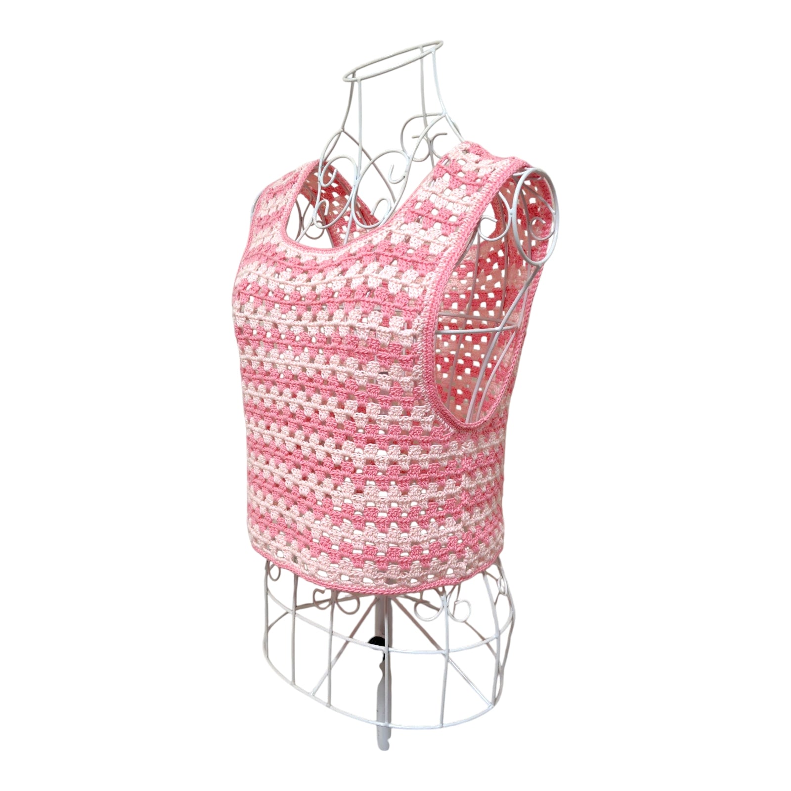 Handmade Crochet Vest (Retro Pink x Light Pink/Granny Stitch) Women's S-M
