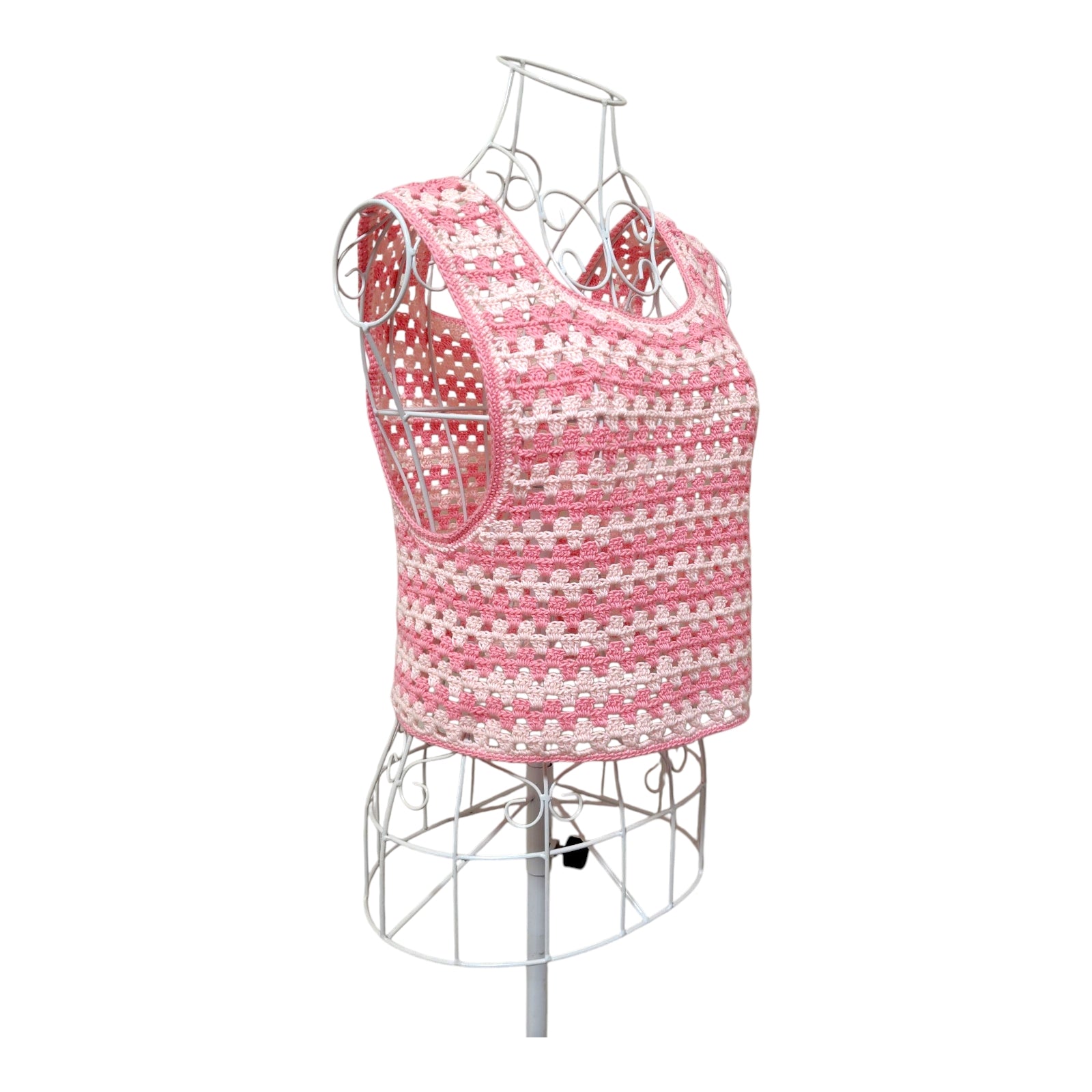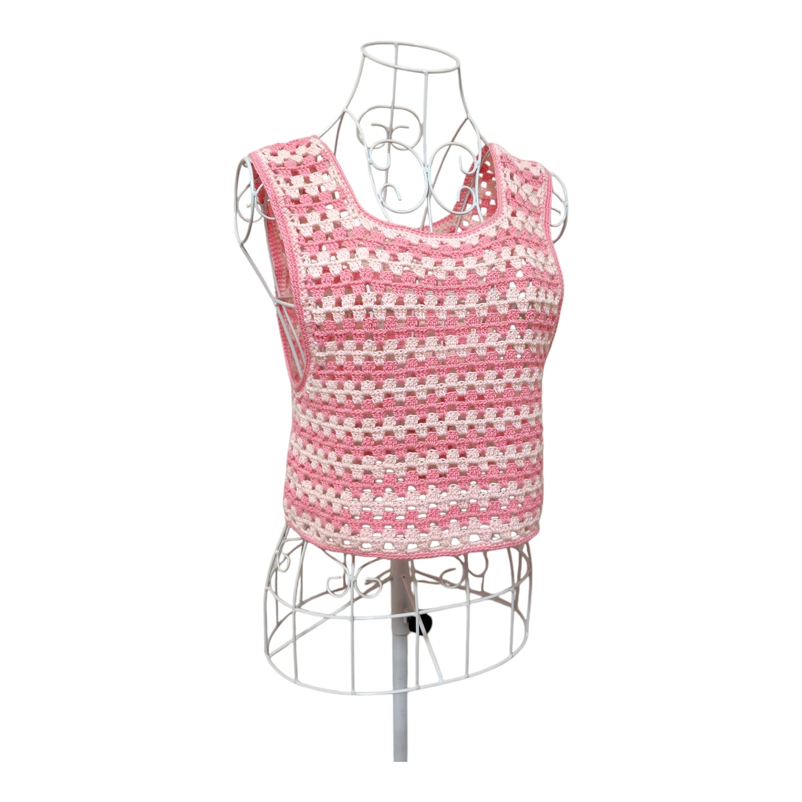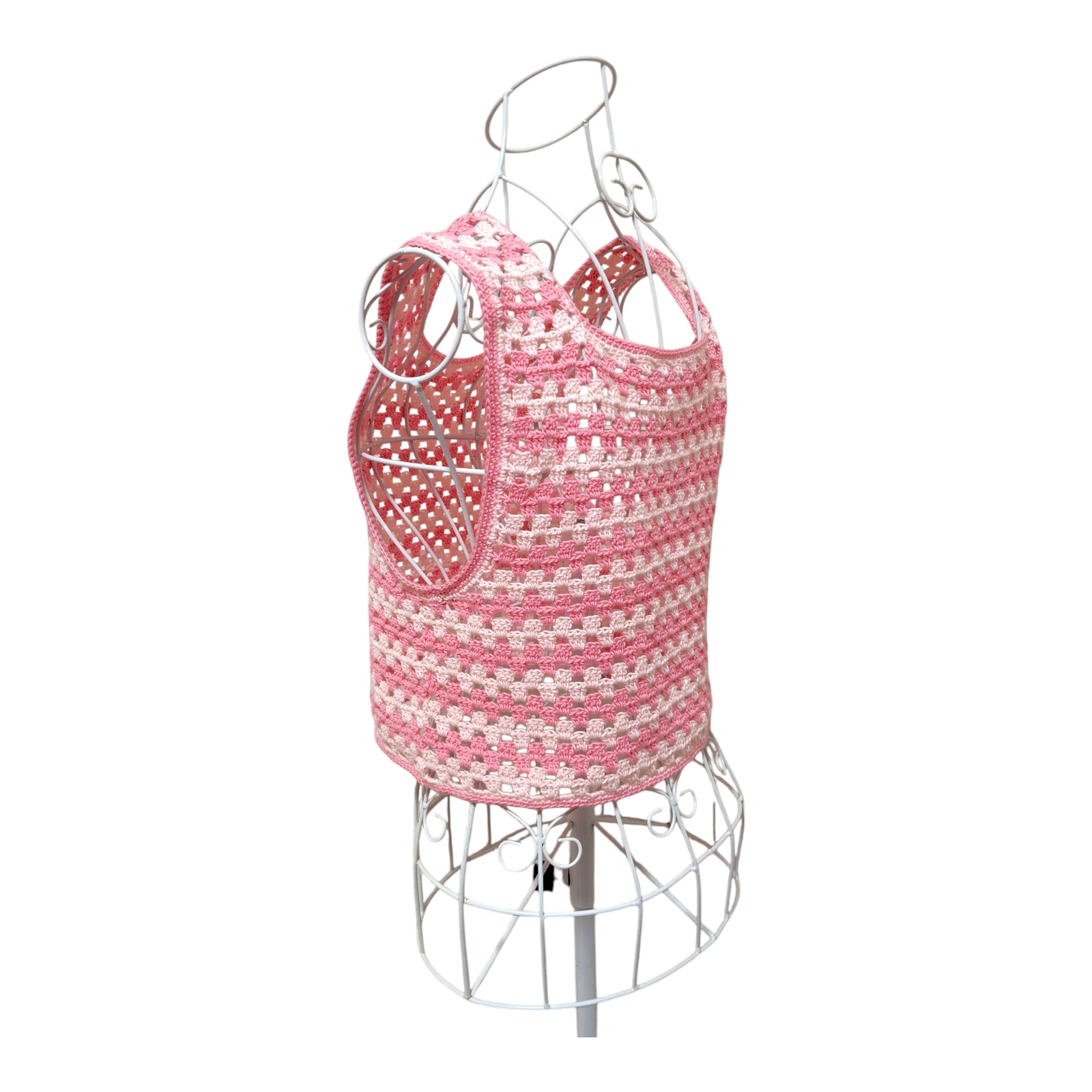 Handmade Crochet Vest (Retro Pink x Light Pink/Granny Stitch) Women's S-M