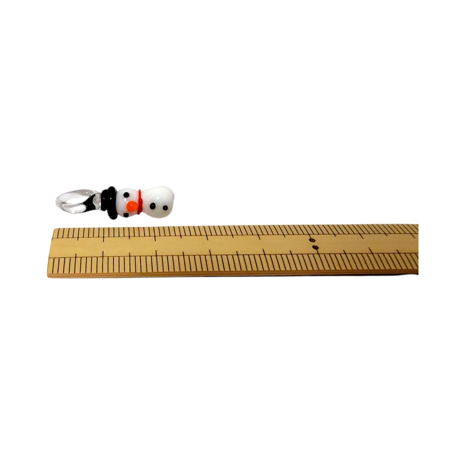 Handmade glass charm, snowman, approx. 2.5cm tall.