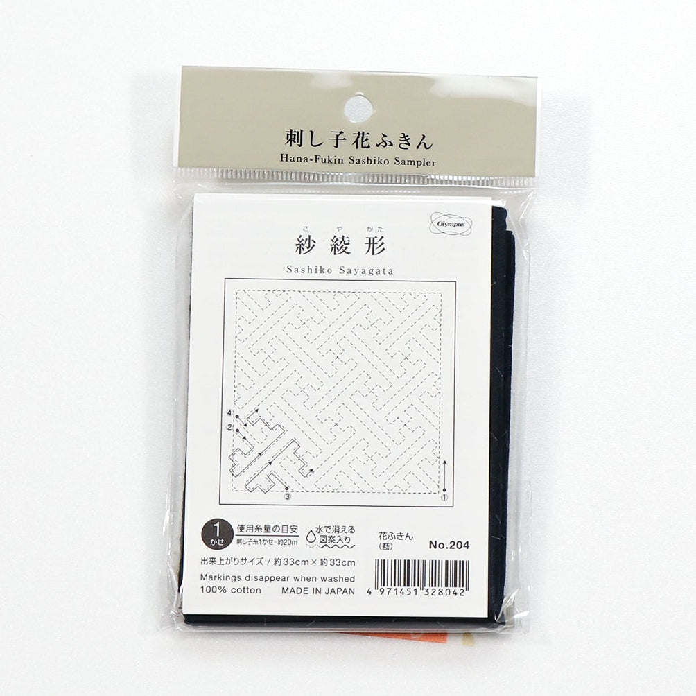 Olympus Sashiko Fabric Pack, Flower Dishcloth (Indigo), No. 204, Saaya Pattern