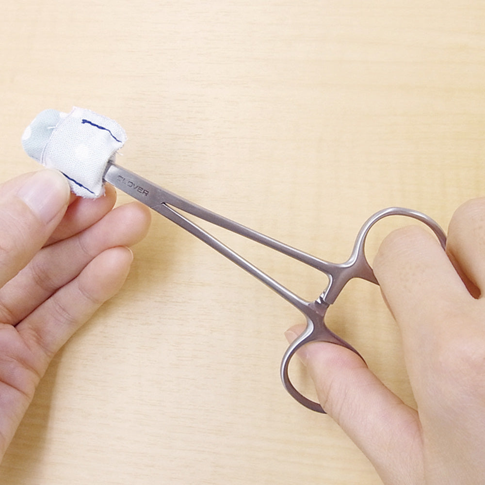 - ぬいしろをはさんで押し込むだけで、袋状に縫った小さなパーツを簡単に裏返せます