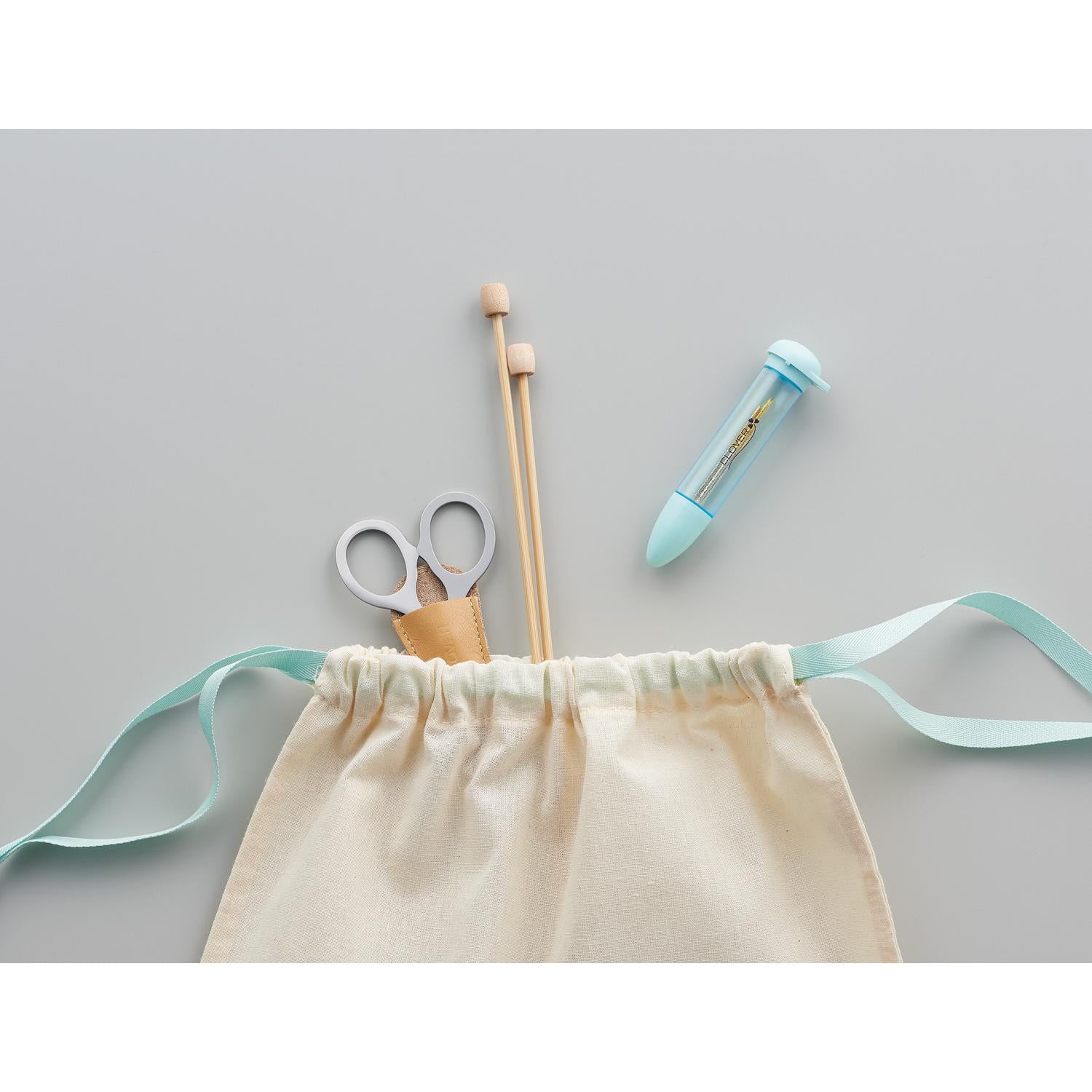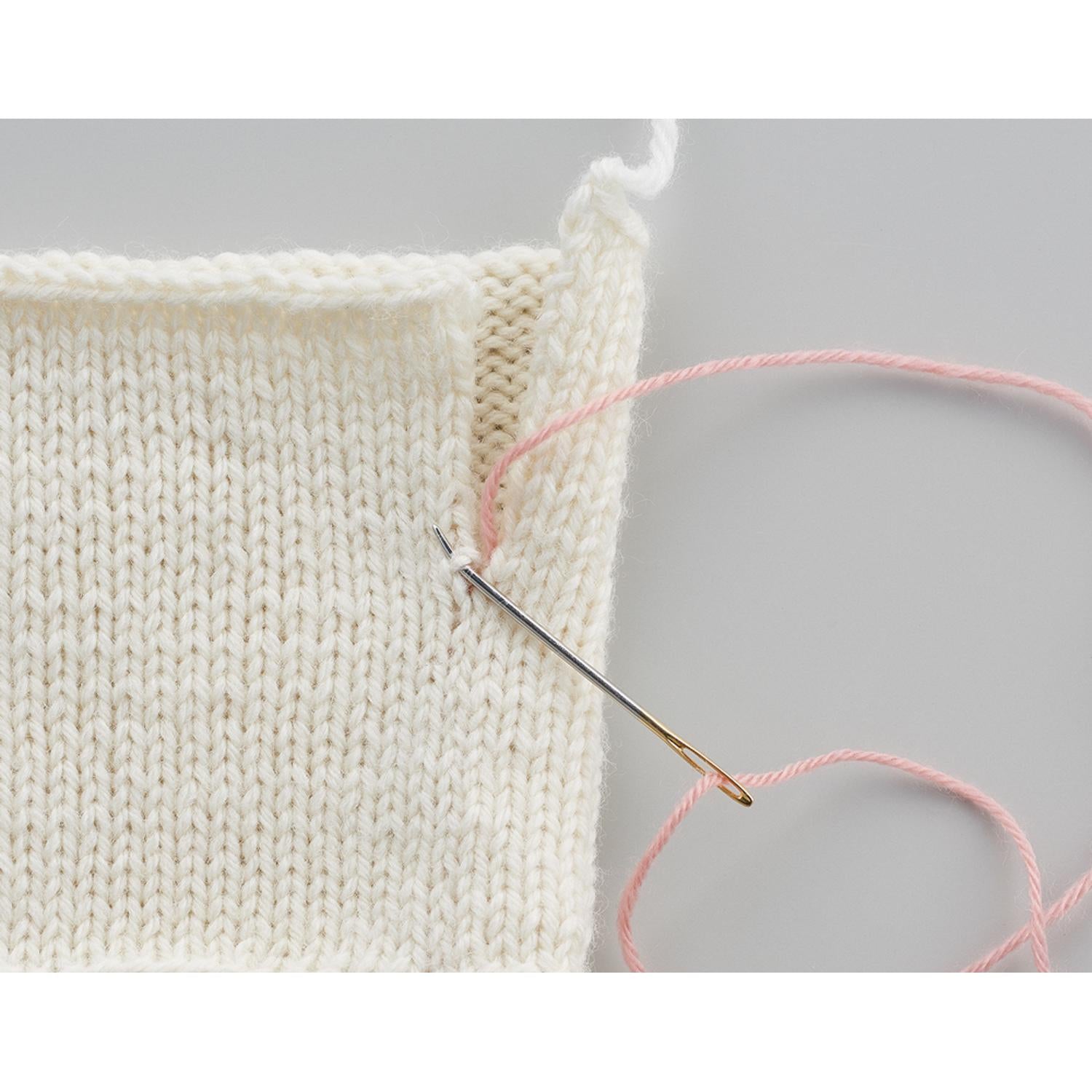 Cloverのとじ針セット「Petit プチ」。先曲げタイプで編地の目をすくいやすく、とじ・はぎ作業がスムーズに進みます。No.12・15・18の3本セットで、糸の太さに合わせて使い分けが可能。青色のケース付きで持ち運びにも便利です。