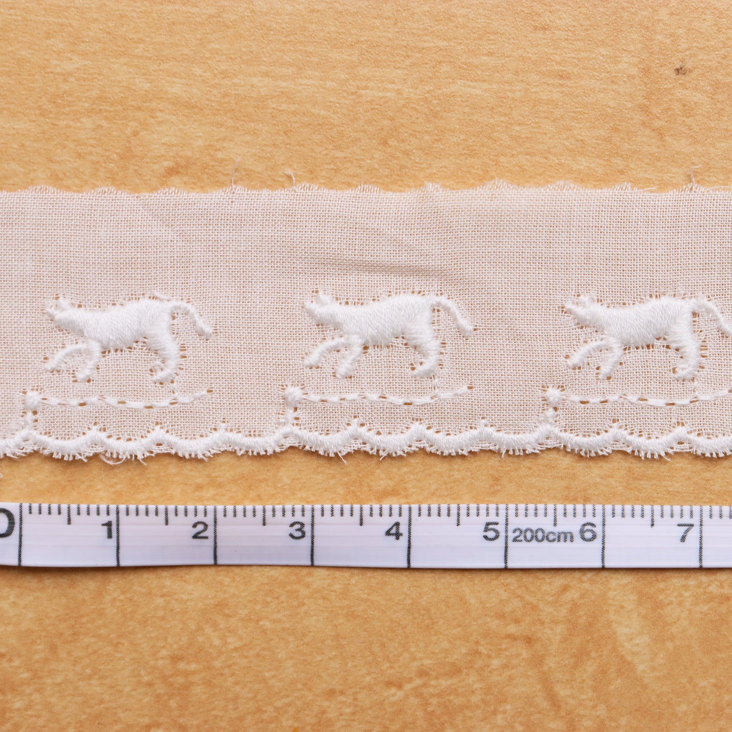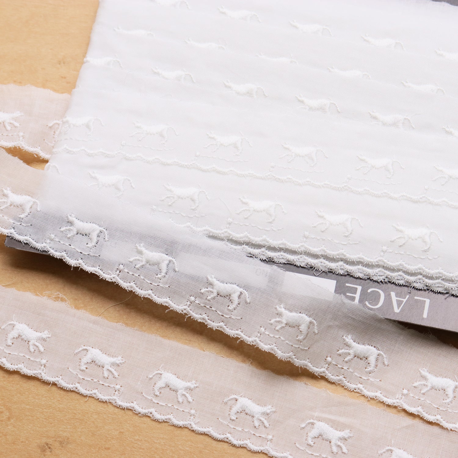 綿レース ねこ柄 白 14m巻 CL1371-00(歩く)