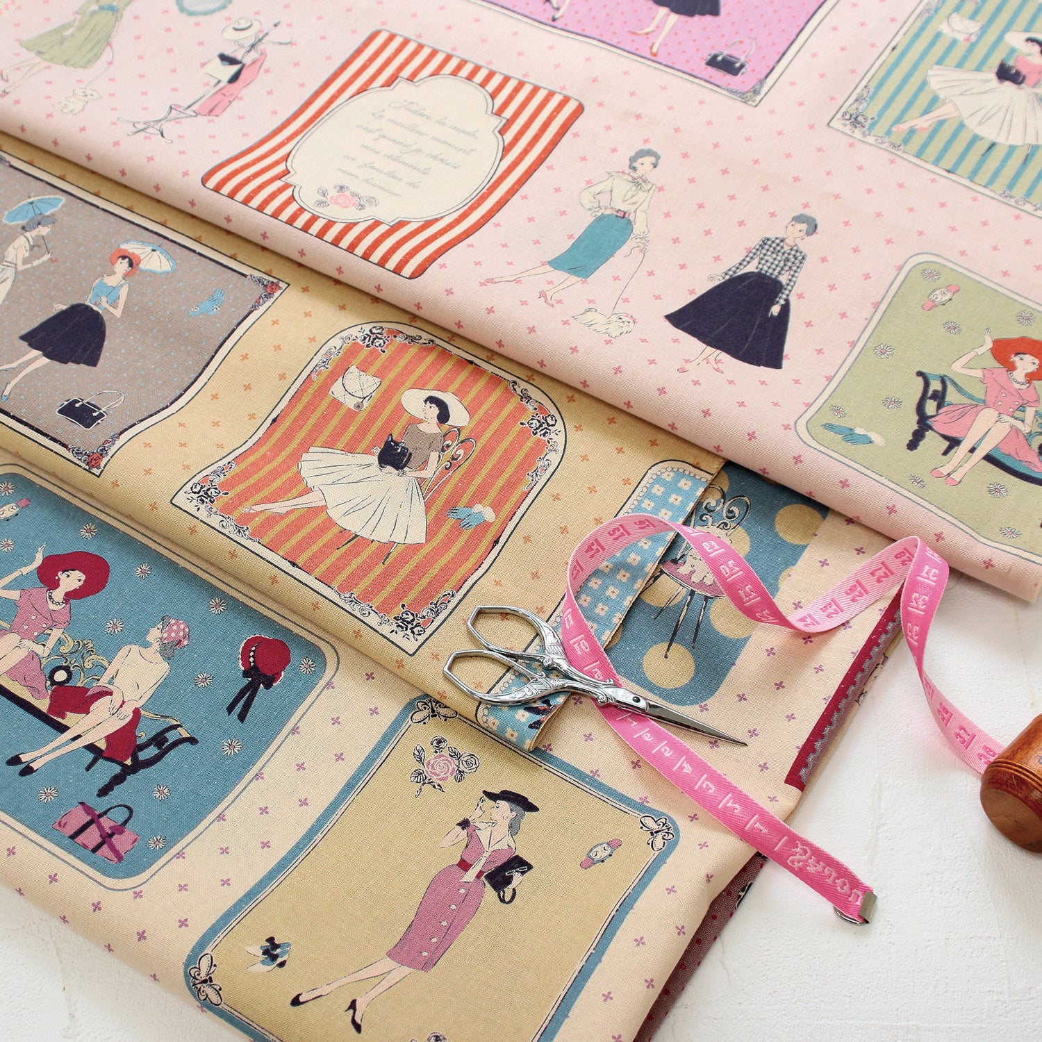 ハンドメイド素材 パネル生地 マドモアゼル レトロ koko seki Couturiere 日本製 108×60cm