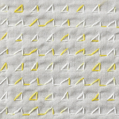 はじける炭酸のような、黄と白の爽やかな2色カスリ染め刺し子糸