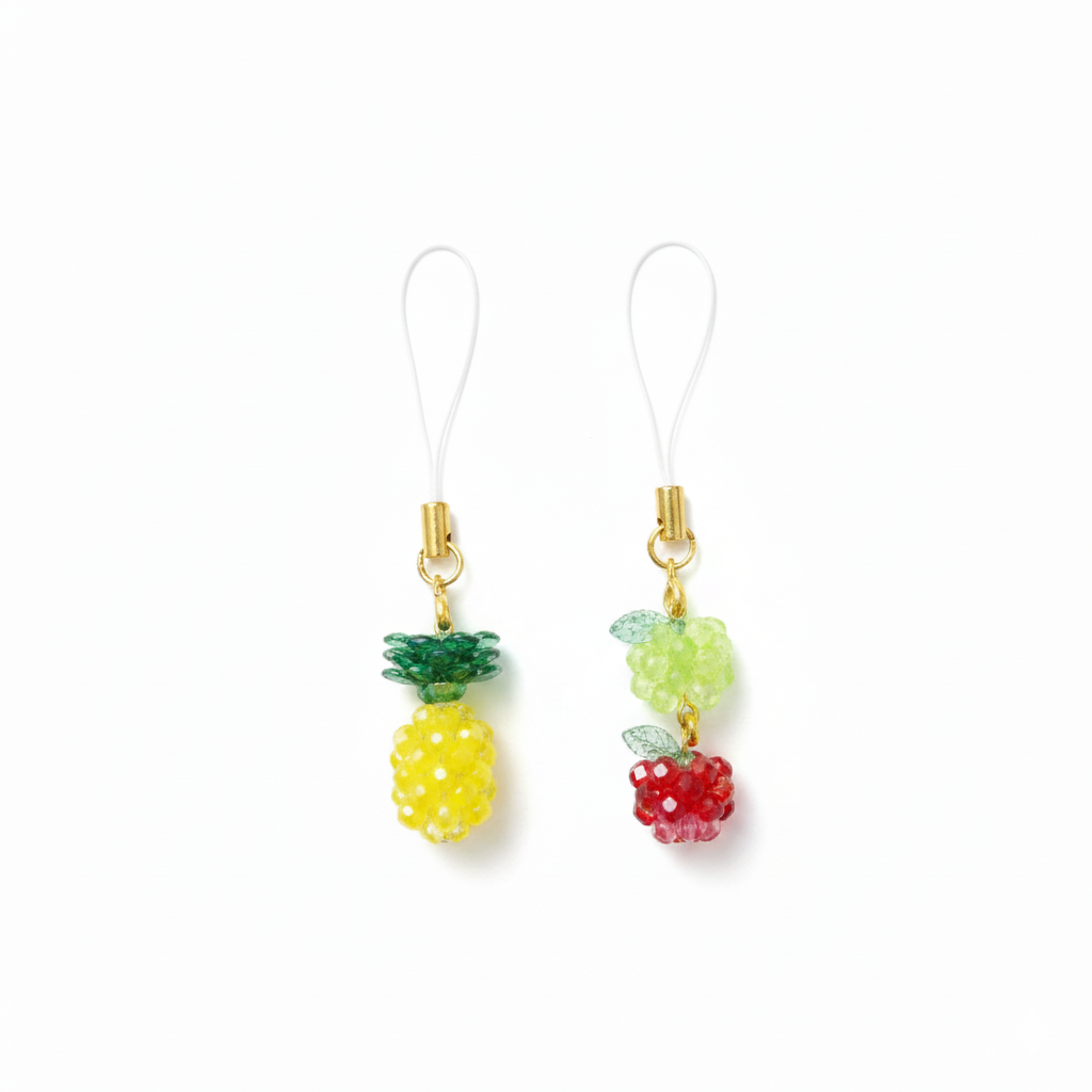 - 「フルーツのストラップキット」で、リンゴとパイナップルの2種類のフルーツモチーフが作れます
