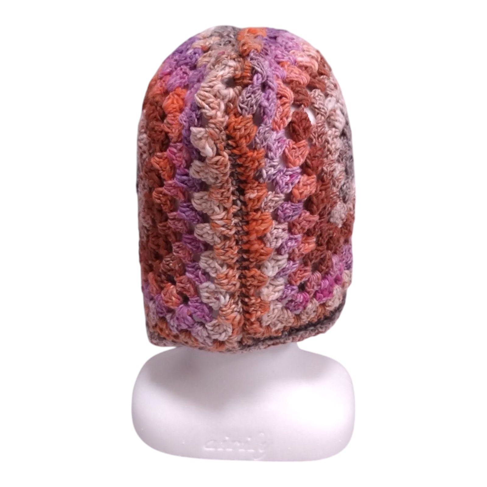 ハンドメイド・グラニースクエア ボンネット(大人用)— コットンシルク混・ピンク