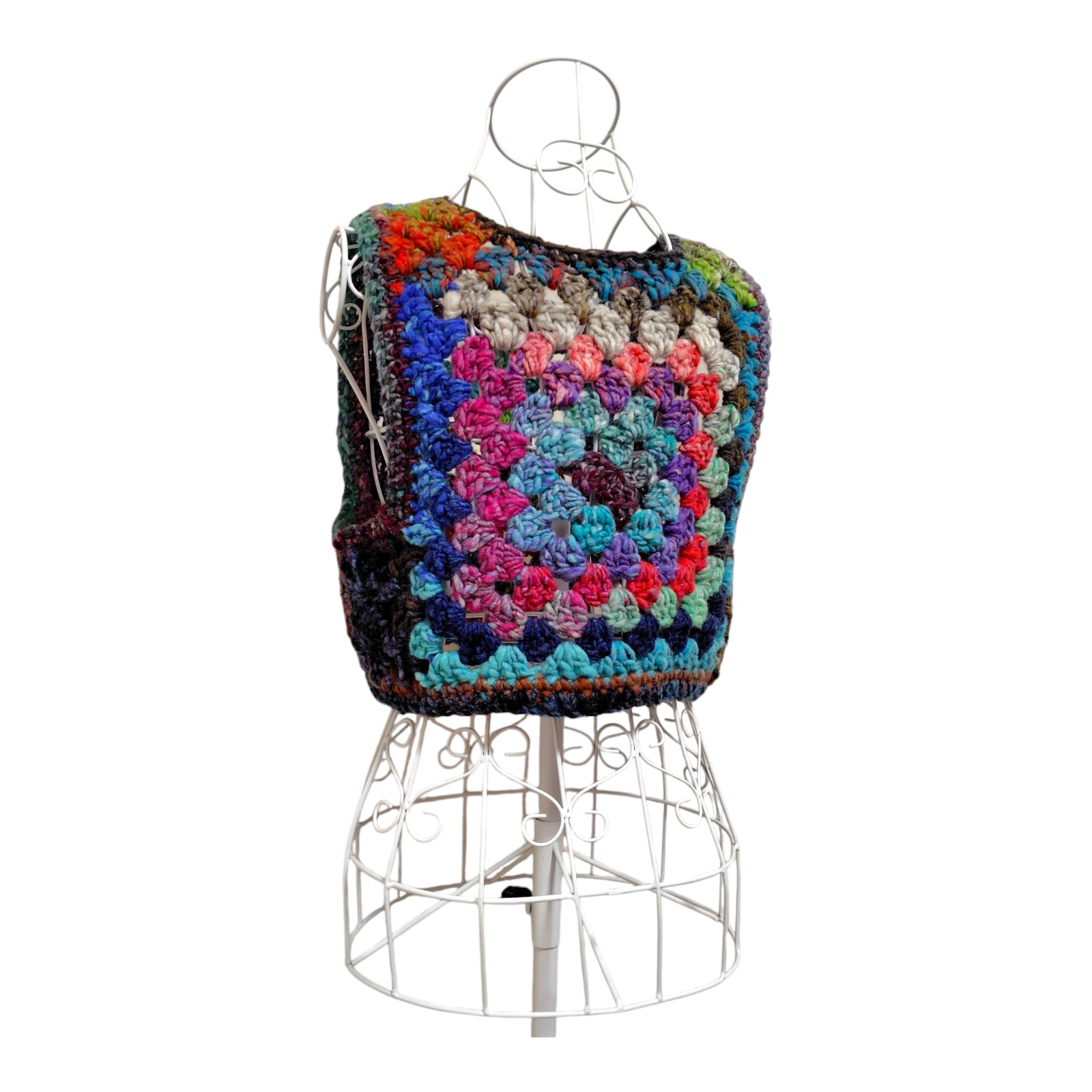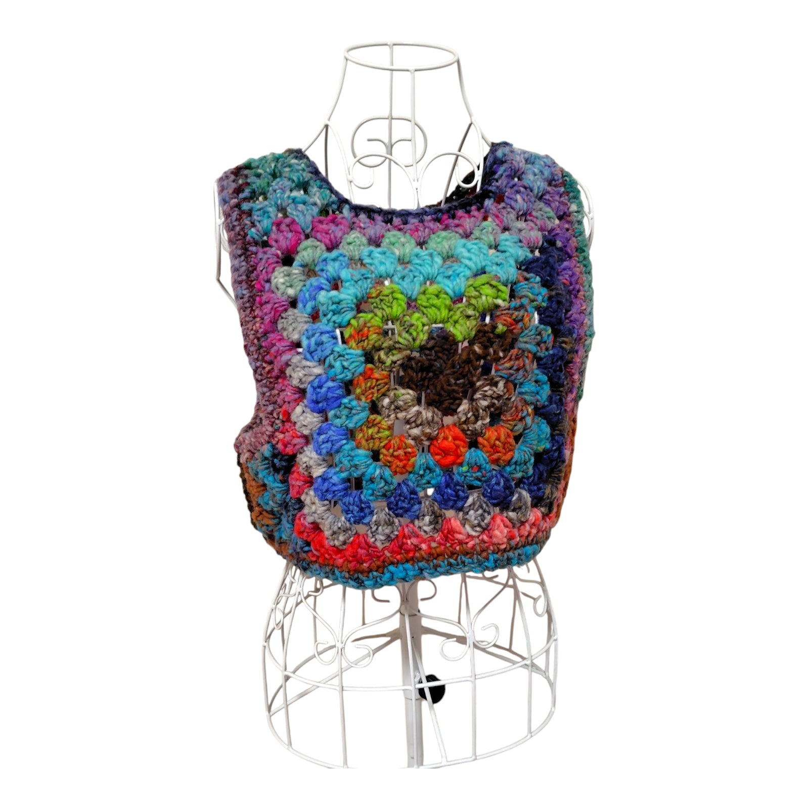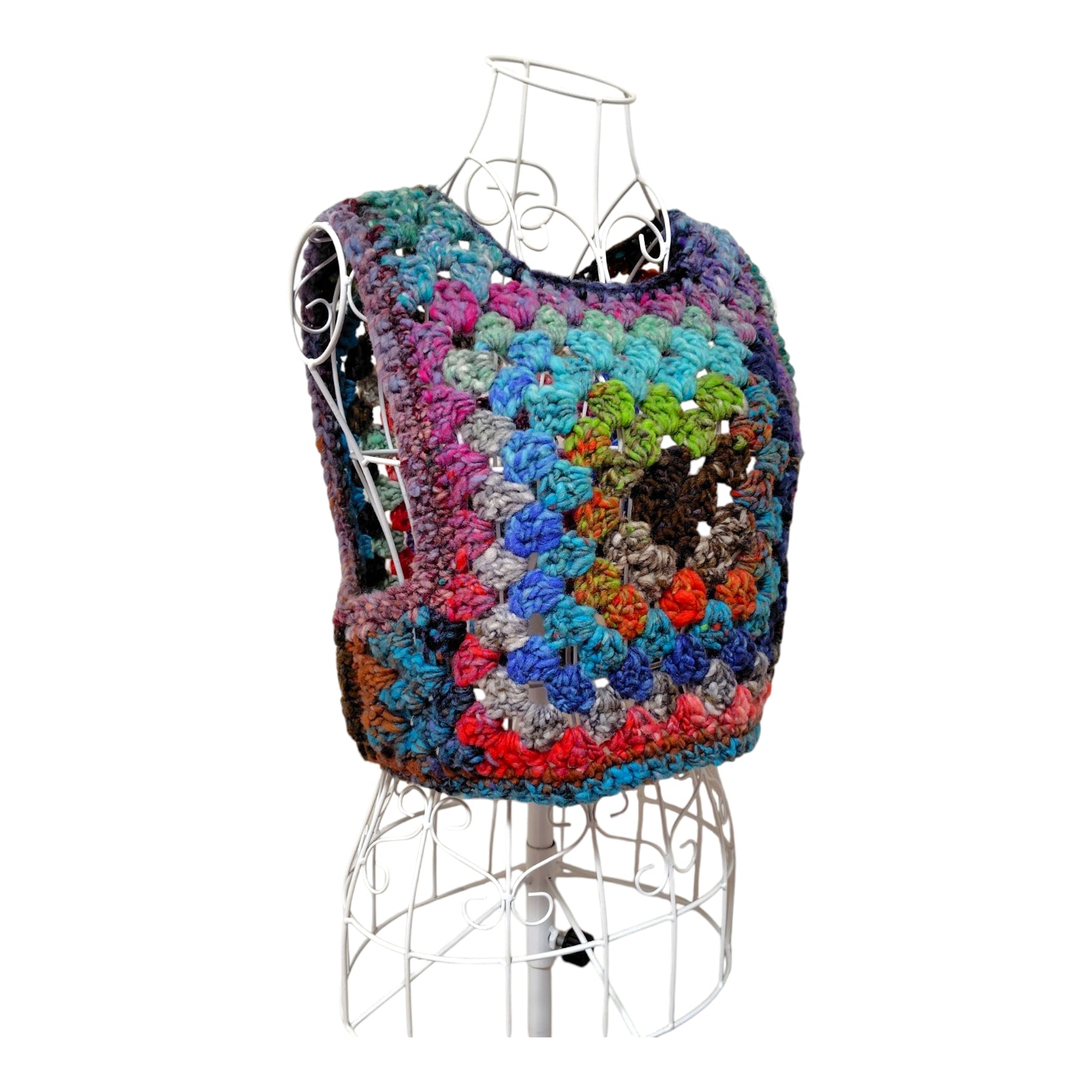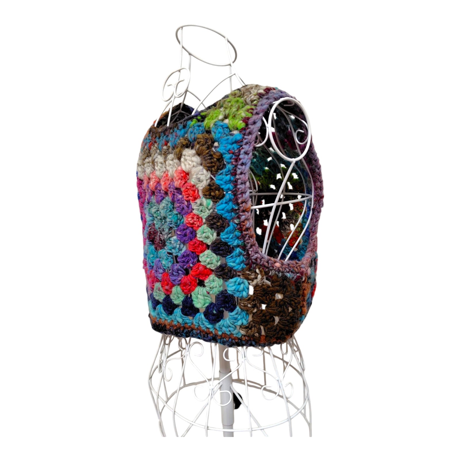ハンドメイド クロッシェグラニースクエアベスト(100%ウール・マルチカラー) レディース S〜M