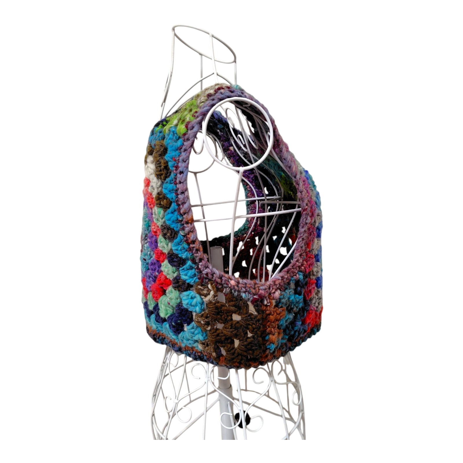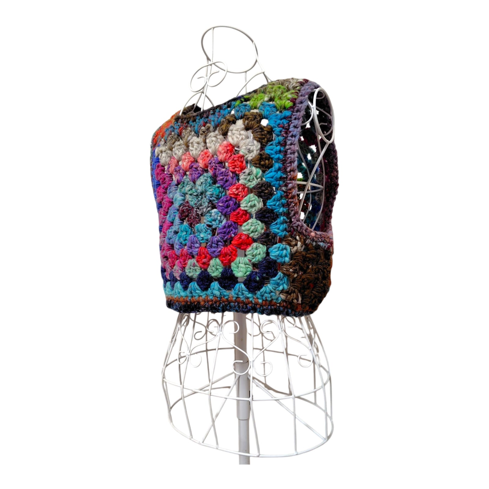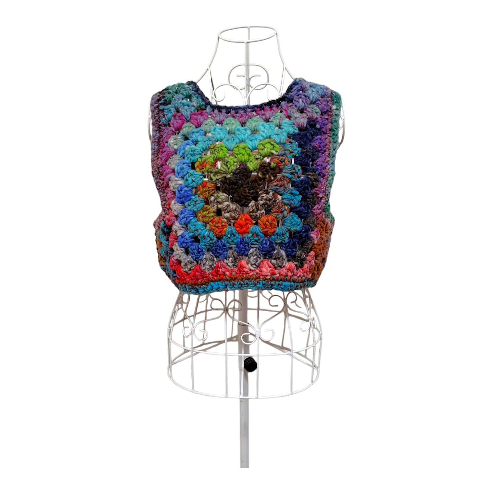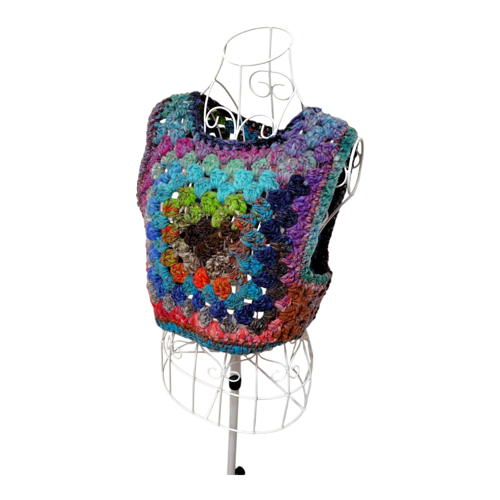 ハンドメイド クロッシェグラニースクエアベスト(100%ウール・マルチカラー) レディース S〜M