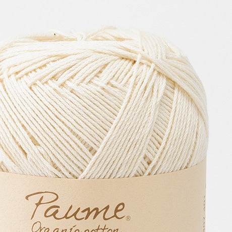 赤ちゃんの肌にもやさしい、ピュアオーガニックコットン100%の無垢綿を使用した中細タイプの手編み糸「ポーム〈無垢綿〉クロッシェ」。