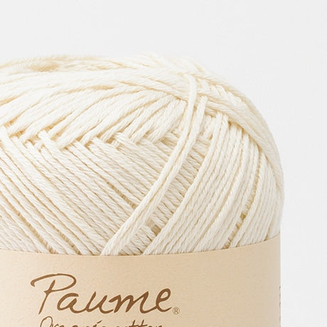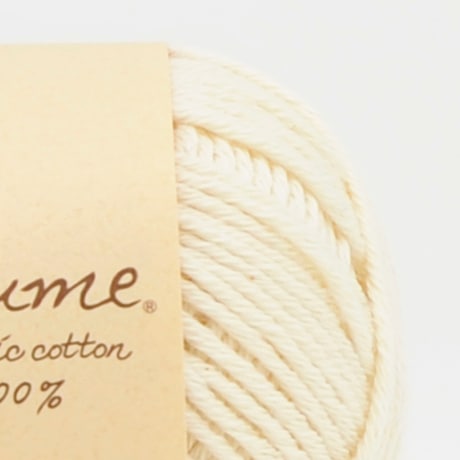 赤ちゃんの肌にもやさしい、ピュアオーガニックコットン100%の無垢綿を使用した並太タイプの手編み糸「ポーム〈無垢綿〉ニット」。