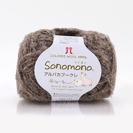 そんな方にぴったりの、ハマナカ「ソノモノ アルパカブークレ」。染料を一切使用せず、原毛そのままの色と質感を活かした極太毛糸です。