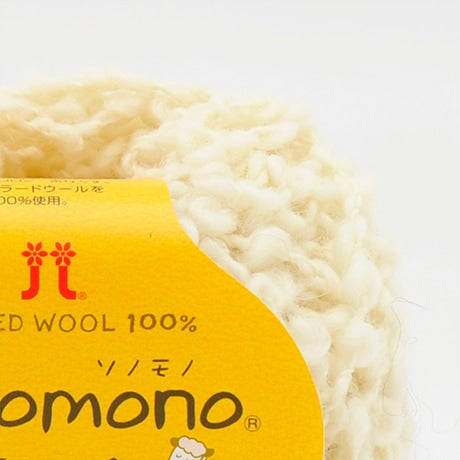 ハマナカ「ソノモノ ループ」。原毛本来の色を活かした、やさしい色合いが魅力の極太毛糸です。ウール60%、アルパカ40%の天然素材で、ふんわりとした軽さとやわらかな肌ざわりが特徴。ループ状の糸構造により、編み地に独特の立体感と表情が生まれます。