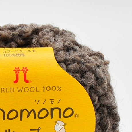 ハマナカ「ソノモノ ループ」。原毛本来の色を活かした、やさしい色合いが魅力の極太毛糸です。ウール60%、アルパカ40%の天然素材で、ふんわりとした軽さとやわらかな肌ざわりが特徴。ループ状の糸構造により、編み地に独特の立体感と表情が生まれます。