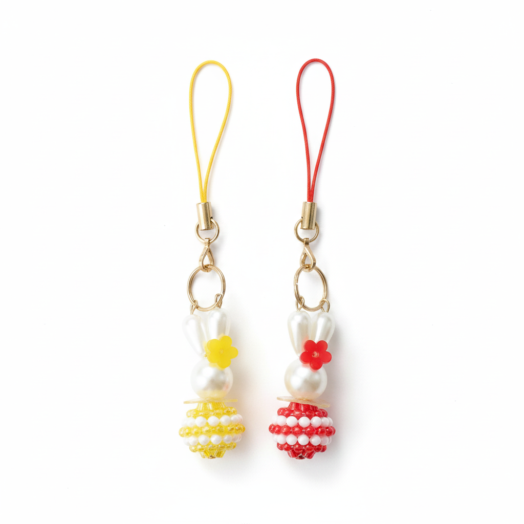 花うさのストラップのキット B/イエロー 赤 2個入り B-2208