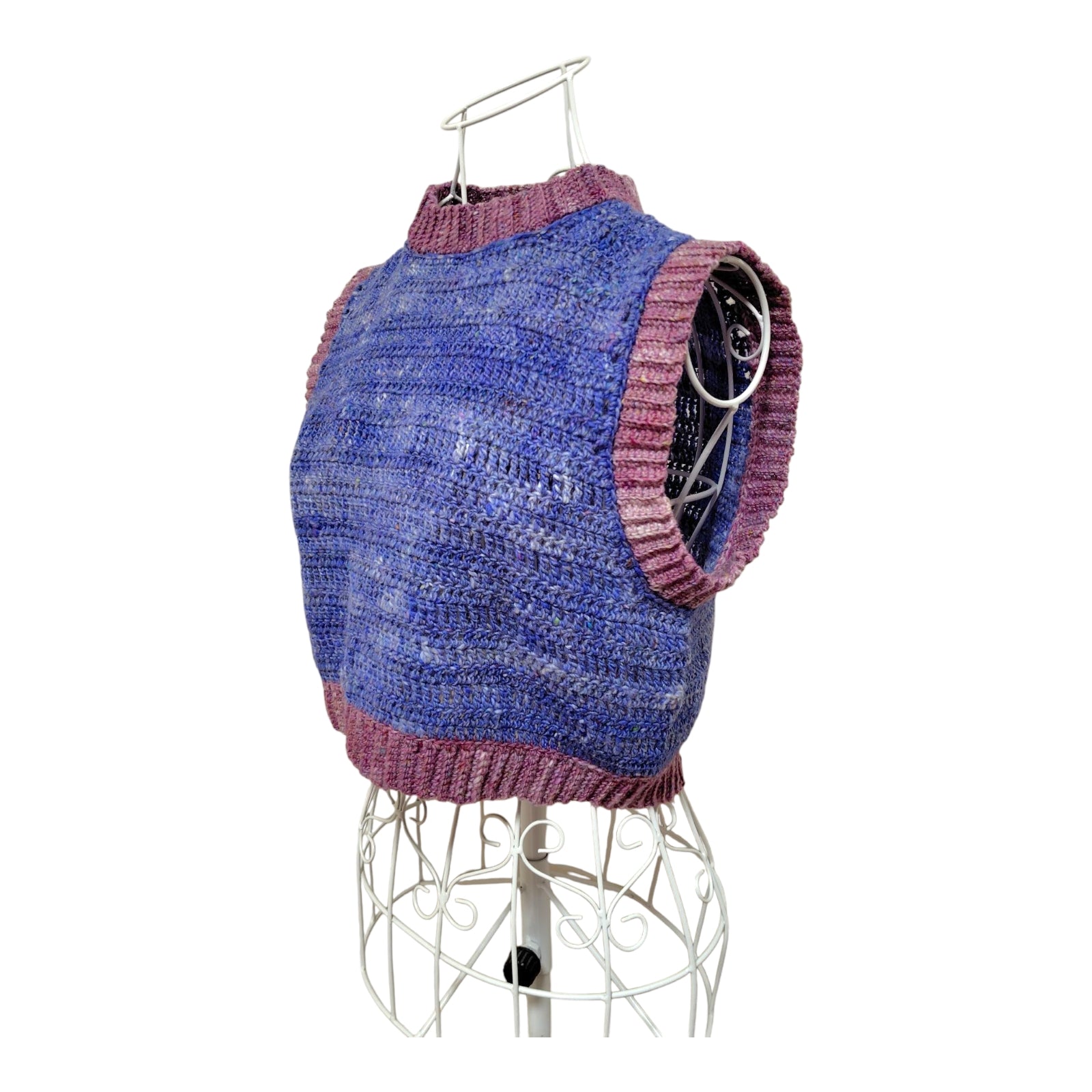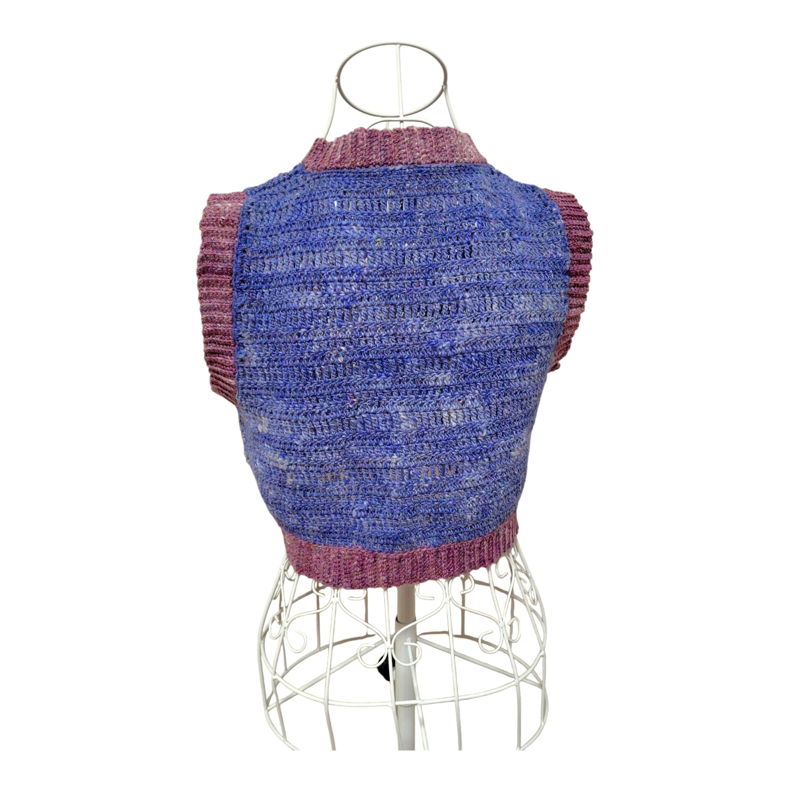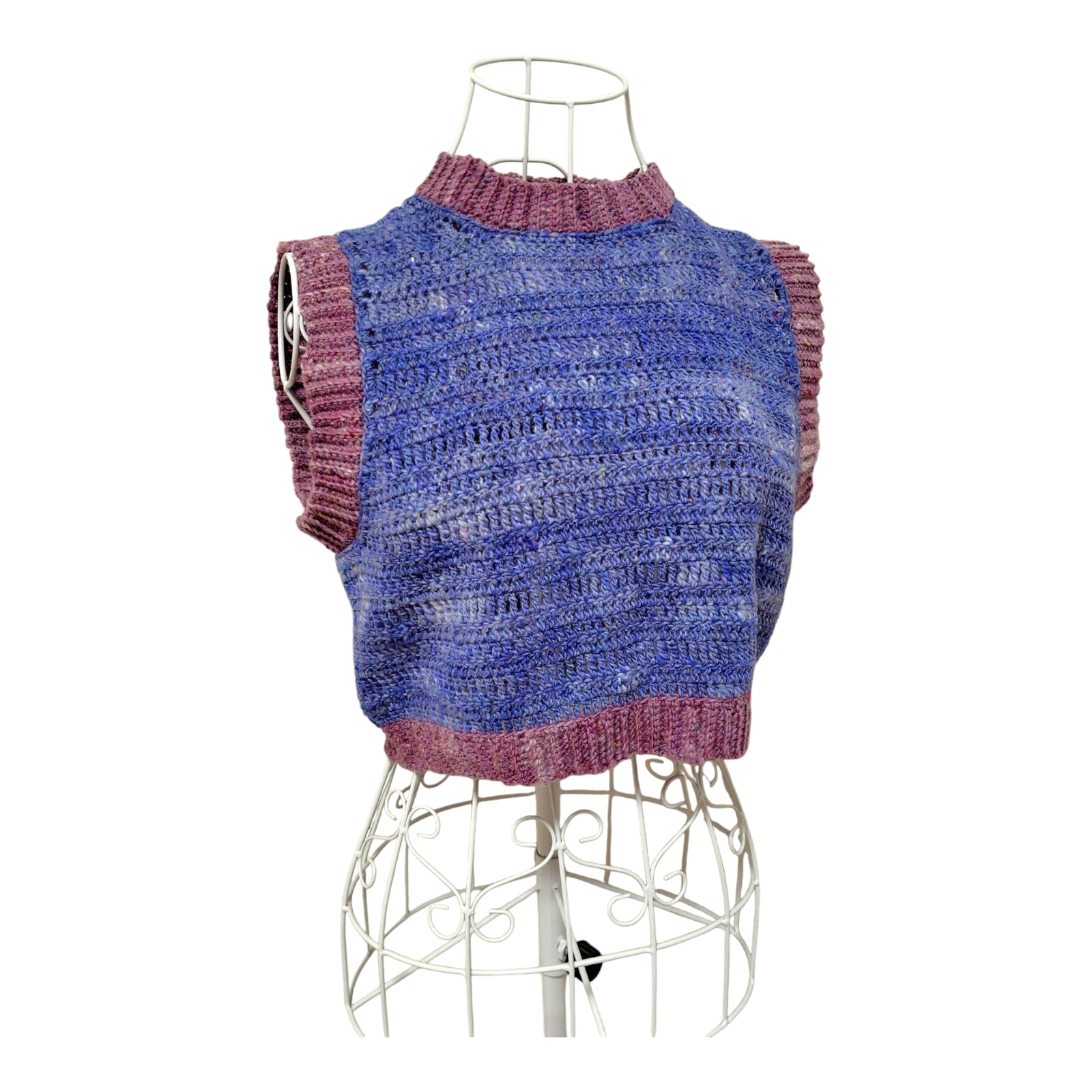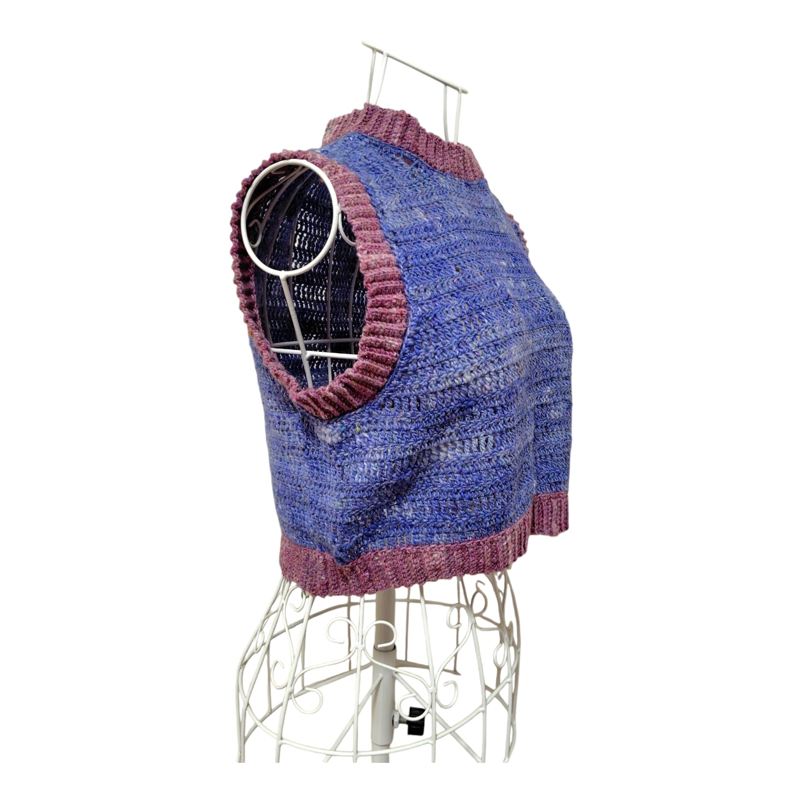 ハンドメイド クロッシェクロップドベスト(ブルー×パープル/ウール・シルク・モヘア混) レディース S