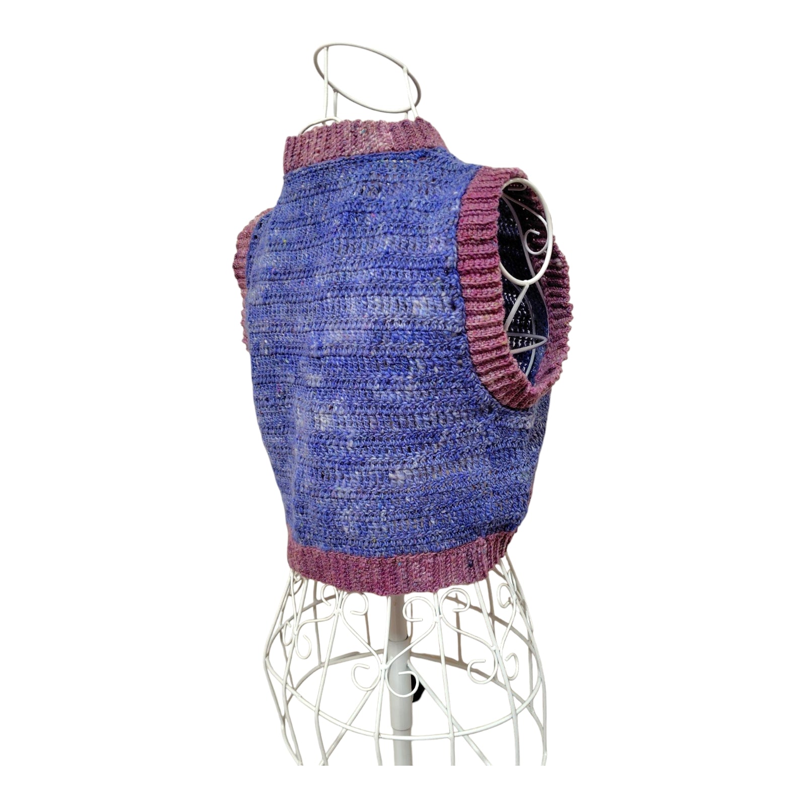 🧶 上品なブルー×パープル。大人のためのクロッシェベスト
