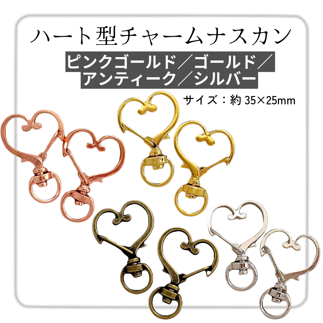 ハート型チャームナスカン(2個入)ピンクゴールド/ゴールド/ アンティーク/シルバー 約35mm
