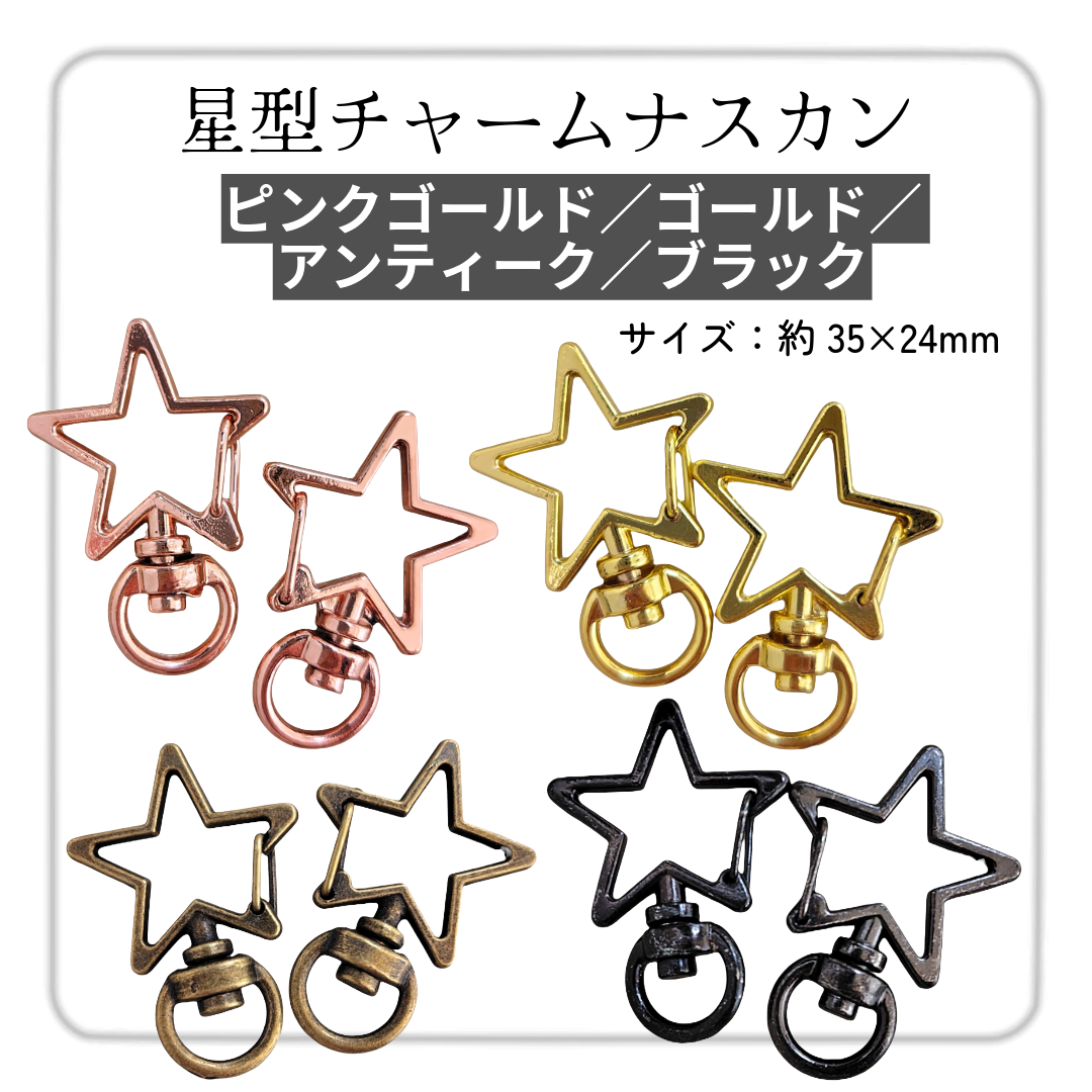 星型チャームナスカン(2個入)ピンクゴールド/ゴールド/ アンティーク/ブラック 約35mm