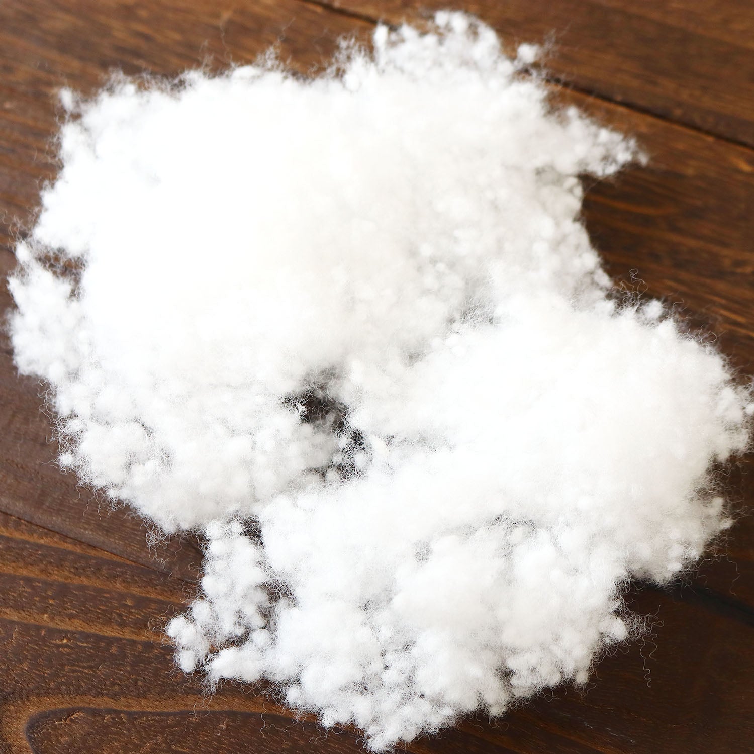 ぬいぐるみ、クッション、ディスプレイ、雪の演出など多用途に対応。ぬいぐるみの表情づくりには少量ずつ詰めて形を整えながら進めるのがコツです。